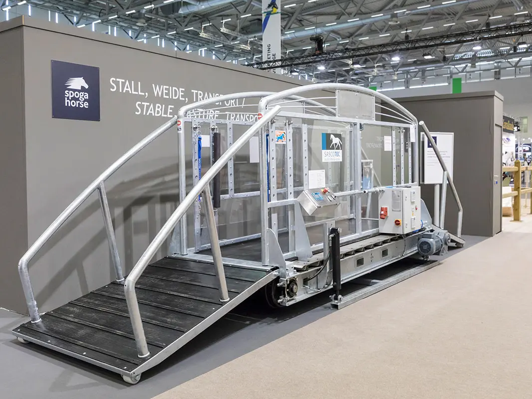 For the introduction to treadmill training in professional and private stables. The Elite X10 is Sascotec's stepper treadmill. With this device, controlled training of your horse is possible, whether as a rehabilitation measure after an injury or as a change in normal everyday training.
